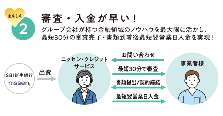 しかも不動産担保や保証人は不要です。資金繰りに余裕が生まれれば、逆に借入依存を減らす、バランスシートを軽くすることも可能になり、キャッシュフローの改善、運転資金の安定化が実現できます。